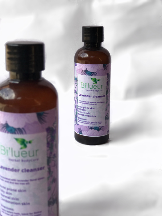 Lavender cleanser: most essential first step when using Bi’lueur products, deeply cleanses skin, pH balanced, mind exfoliant, cleanses the skin from free radicals and bacterial causing acne.
